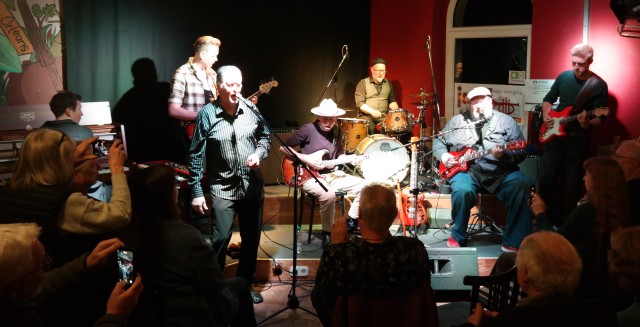Und zu guter Letzt ließ es sich auch der Grandseigneur des Blues, Abi Wallenstein, nicht nehmen, die letzten zwei Songs der schwäbischen Bluesmusiker zu begleiten, „Was die Jungs hier präsentiert haben, ist Blues auf ganz hohem Niveau”, lobte Wallenstein die Band. Und auch für sie war der gemeinsame Gig ein großartiges Erlebnis. „Wir sind total hin und weg, dass wir mit dieser Blues-Legende gemeinsam spielen durften”, so Alexander Sessler von „Pick up the Harp“.