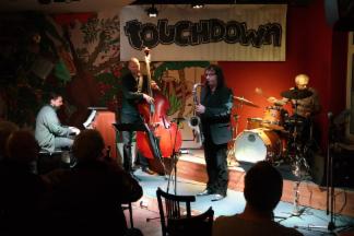 Das Programm begann mit einem schön swingenden dezenten Titel von Herbie Hancock, gefolgt von der freien Version eines dorischen Chorals. Noch hat das Stück keinen Namen, und es fiel auch niemandem einer ein, der sowohl die Sphärenklänge als auch die kraftvoll schreitenden Passagen unter einen Hut gebracht hätte. Deutlich wilder mit gutem Drive dann der Blues „Changing of the guard“ - Ben von Poser brillierte am Klavier mit langen virtuosen Läufen. Ein wenig Zuckerguss für’s Gefühl sollte nicht fehlen, und so erklang „Some day my prince will come“ aus dem alten Schneewittchenfilm von Walt Disney, anfangs im ¾ Takt. Allerdings fing die Band unvermittelt gewaltig an zu swingen, der Zuckerguss war fort, und nur die letzten Takte nahmen die Klangfarbe des Anfangs wieder auf. Vor der Pause spielte „TouchDown“ noch“A night in Tunesia“ von Dizzy Gillespie, hier ein rasches Paradestück für Tenorsaxophon und Klavier, aber auch der Teil mit nur Piano, Kontrabass und Schlagzeug (Nesin Howhannesijan und Thomas Fülbier) war ein echtes Glanzstück.
