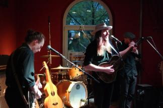 Bestes Beispiel dafür war der erste Act des Abends: Bad Temper Joe aus Bielefeld hat längst einen internationalen Ruf, das britische Magazin „Blues Matters“ schrieb über den schwerblütigen ostwestfälischen Barden: „Schwer zu glauben, dass der Mississippi-Sound in Deutschland eine neue Heimat fand, aber genau das tat er – durch Bad Temper Joe.“ Wie sehr er den melancholischen Grundton des Blues verinnerlicht hat, beweist Joe mit jeder Geste, mit jeder Textzeile und mit jedem gesungenen und gespielten Ton. Sein gepflegtes mürrisches Image vermengt er geschickt mit eigenwilligem Humor: „Da werden einige wieder sagen, das ist doch kein Blues, aber wenn ich es spiele, ist es Blues!“ Ja, stimmt, der ganze Kerl ist durch und durch bluesig. Mal mit sanfter, mal mit kratziger Stimme gibt er seine selbst geschriebenen Songs zum Besten, mal mit der stoischen Ruhe eines Südstaatlers, den das harte Leben aller Illusionen beraubt hatte, mal mit der aufmüpfig kreischenden Attitüde dessen, der sich nicht unterkriegen lässt, verlegt Joe den uramerikanischen Weltenschmerz glaubhaft in die westfälische Provinz. Mit Moritz Herrmann an akkustischer, wie E-Gitarre versteht er sich blind, und auch Marcel Rahe fügt sich harmonisch in das Trio ein. Joe: „Er ist der einzige, der mit mir spielen kann!“ Und natürlich kommt auch Bad Temper Joe über ein Urthema des Blues nicht hinweg: Die Frau ist weggelaufen. „Das ist immer schlimm, aber meist ist es schlimmer, wenn sie wiederkommt!“