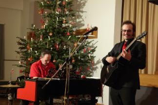 weihnachtlichen Gemütlichkeit bot das Duo aus den Niederlanden den Gästen des Jazz-Clubs Holzminden. Die beiden Vollblutmusiker Vito Becker (Piano, Bluesharp und Percussion) und Tino Roberts (Gitarre und Gesang) traten, bedingt durch den Brandschaden im alten Bahnhof, im Altendorfer Hof auf und hatten ihre Zuhörerschaft ab der ersten Minute fest im Griff.