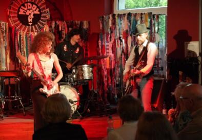 Mit lang anhaltenden Applaus nach jedem Stück wurde das honoriert. Fabian Spang mit seiner markanten Bluesstimme heizte dem Publikum richtig ein. Das Stück "Shoelace Fuzz" ist eines der neueren Eigenkompositionen, das Ina Spang geschrieben hat, wie mehrere der nachfolgenden Musikstücke, die Geschichten erzählen, welche sie auch in mehreren Büchern verarbeitet hat. Hier ging es um die Enden eines Schnürsenkels, die sich eines Morgens nicht mehr vertrugen.